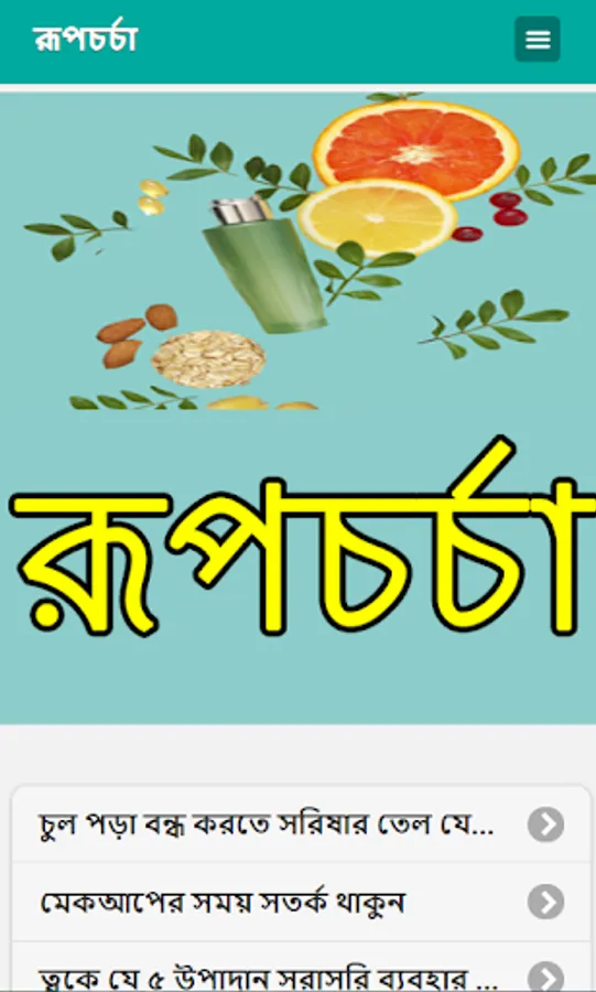 রূপচর্চা অ্যাপটিতে বেশ কিছু ঘরোয়া উপায় নিয়ে করা হয়েছে আশা করি আপনাদের কাজে লাগবে।