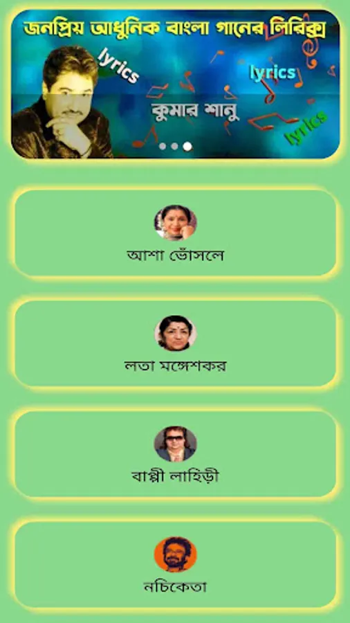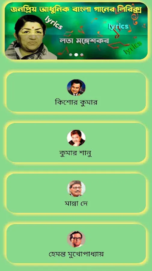 The app is arranged with modern popular songs of old artists. It will be very helpful for new artists who perform on stage with modern songs of old artists. All the popular songs of legendary artists will be found here. It will be very useful for those who are learning new songs.