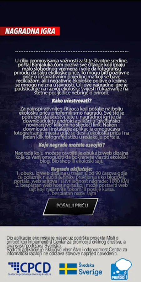 Send information and photo through the application without opening an email. Your text and photos will come directly to the editorial office of portal banjaluka.com. All you need is to have an internet and this application that takes up the minimum memory of your phone. The application size is 3.5 MB (approximately as 2 photos).