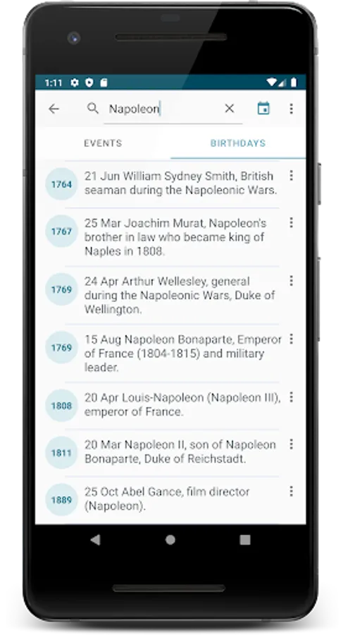 Cognitive app and widget Today in history displays the most important historical events and birthdays of the selected day.