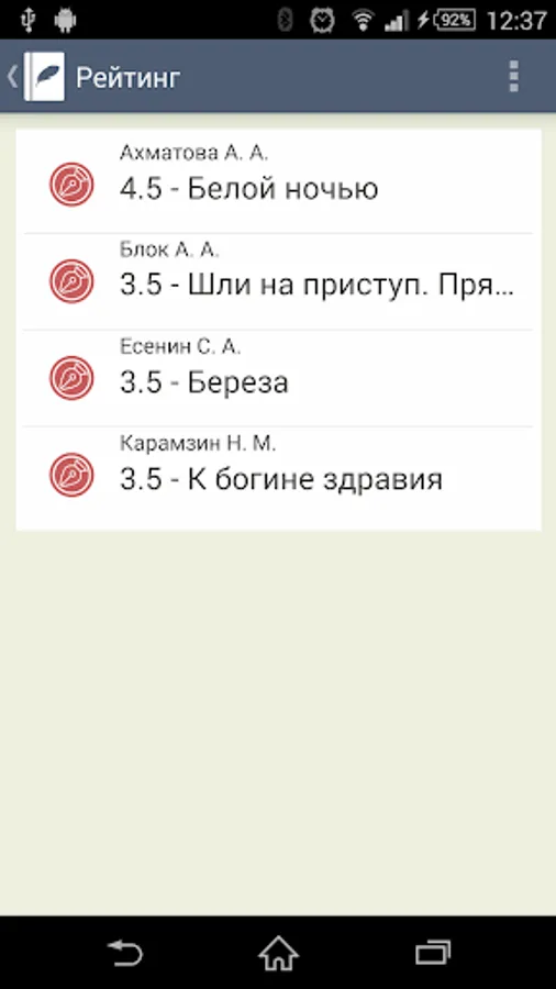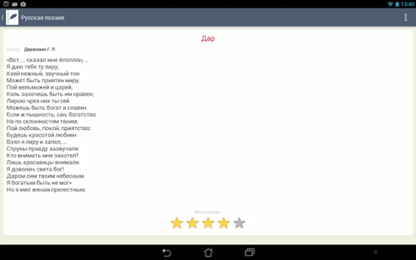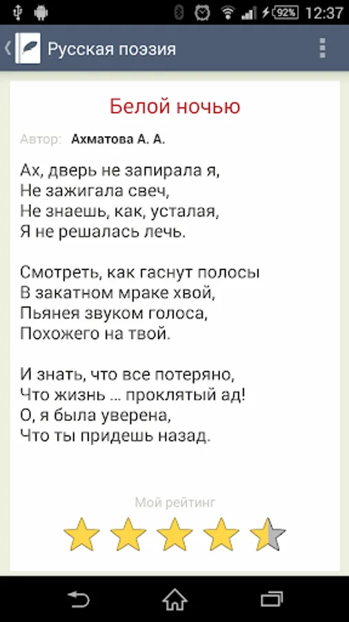 Russian poetry - more than 8,000 works from classical to contemporary. Catalog of authors, easy search, browsing history, random selection works.
