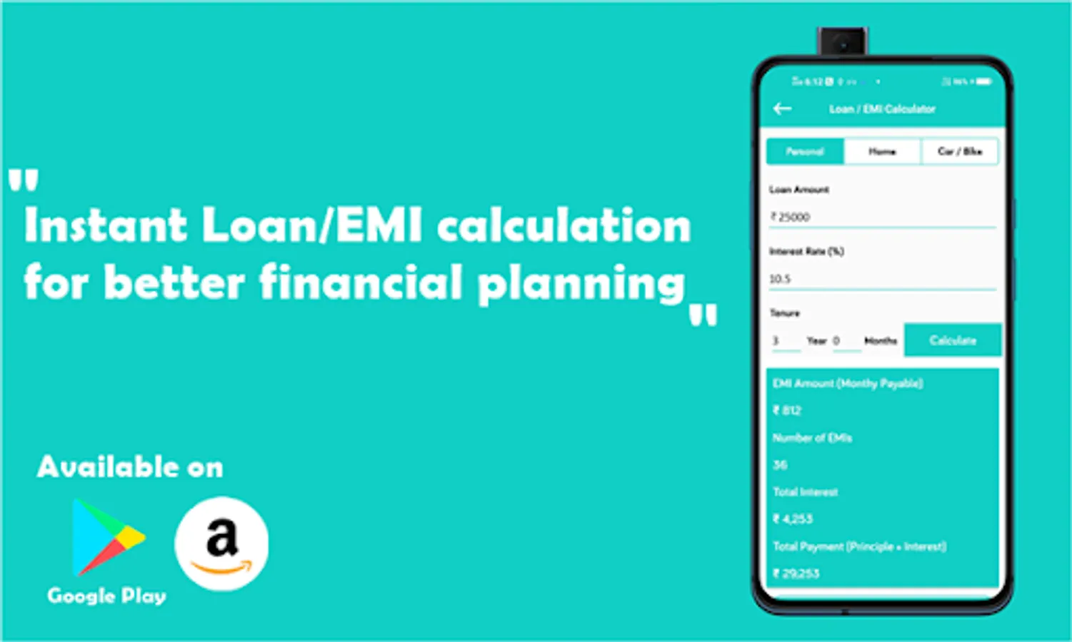 Loan EMI calculator can be very useful for anyone willing to calculate the number of EMI,s, monthly payable amount and total Interest etc. Bank Balance Checker app comes with all types of loan/emi calculator such as home loan emi calculator, personal loan emi calculator, bike loan emi calculator and car loan emi calculator etc.