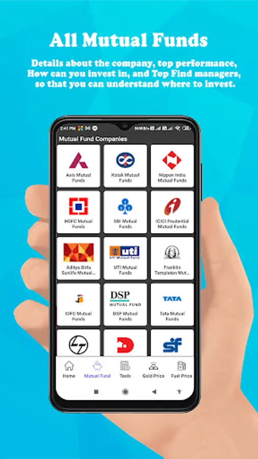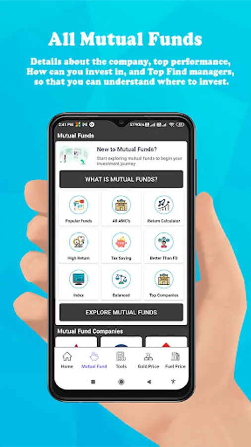The app will give you information about all mutual fund companies where you will find; Details about the company, top performance, How can you invest in, and Top Find managers of that Company so that you can understand where to invest.