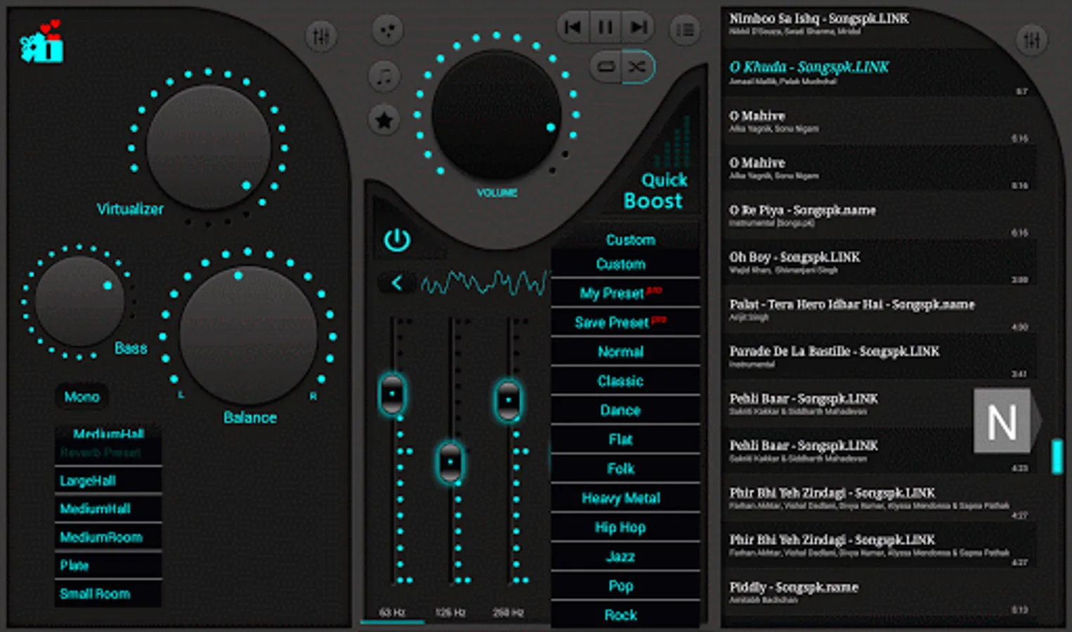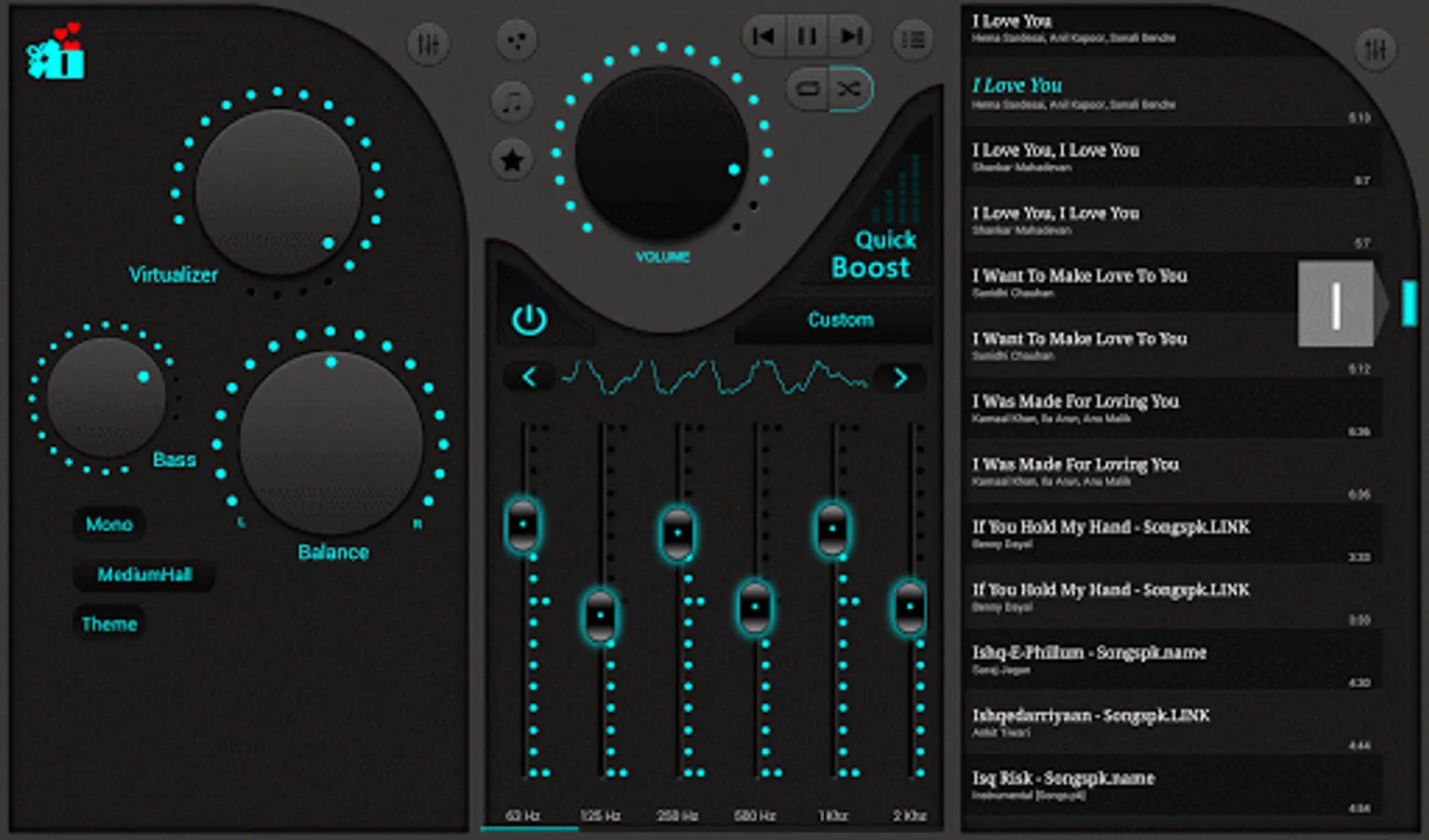 Bass Booster and Equalizer is a ten-band Music Player. who improve sound effects of your device by adding some magical effects in sound like bass, virtualizer etc.