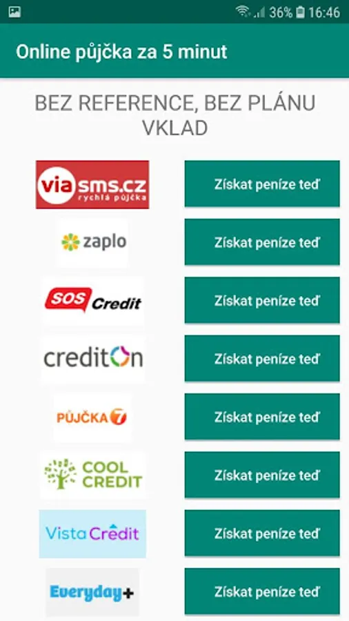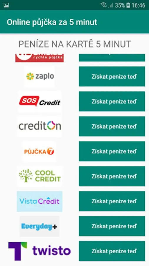 With this app you can get a loan in 5 minutes. Lending conditions are very simple. The only general requirement is the age of 18, the presence of documents of the Czech Republic. The loan is issued in cash or Visa Mastrcard online.