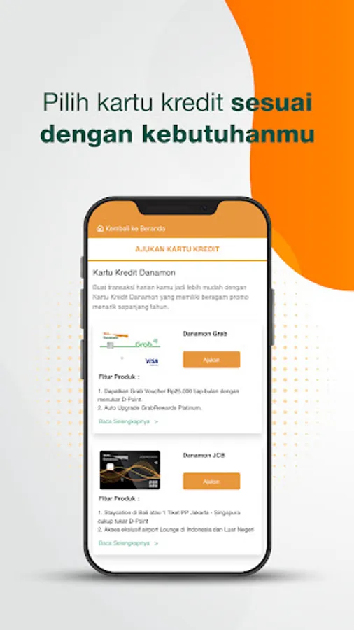 Various other benefits from your choice of card: Danamon Grab Card, Danamon JCB Precious Card, and more.
