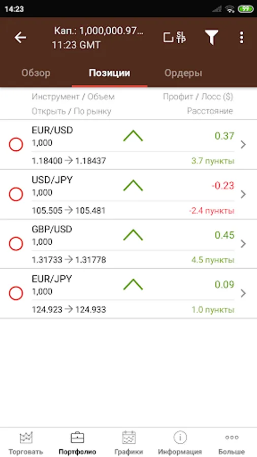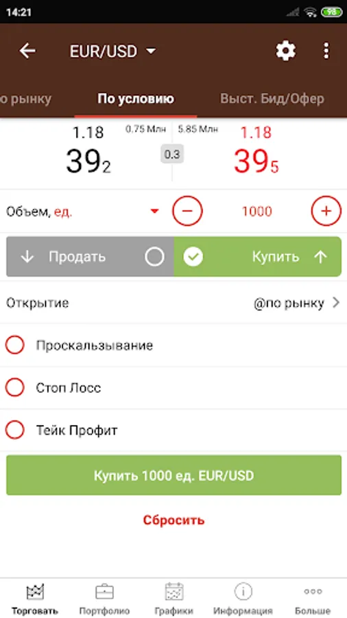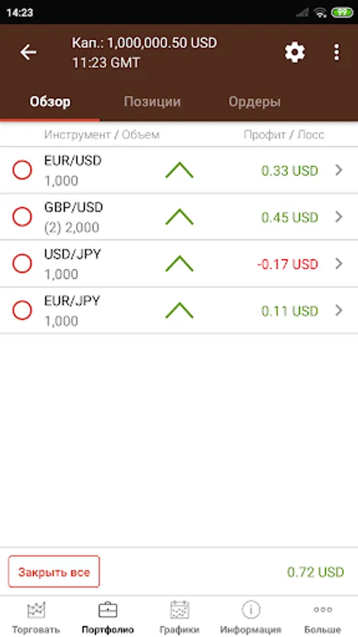 In order to let you trade your account from anywhere, app supports Edge/3G/Wi-Fi connection types with an automatic connection control system that adapts data flow size depending on the connection speed.