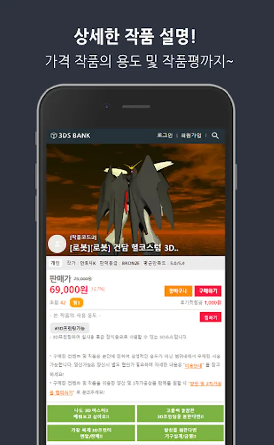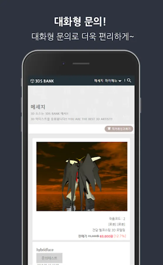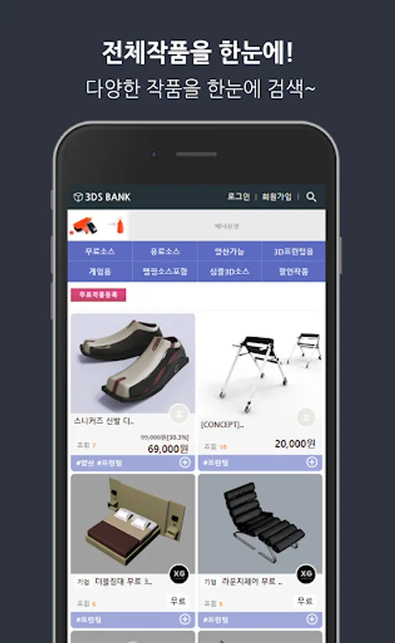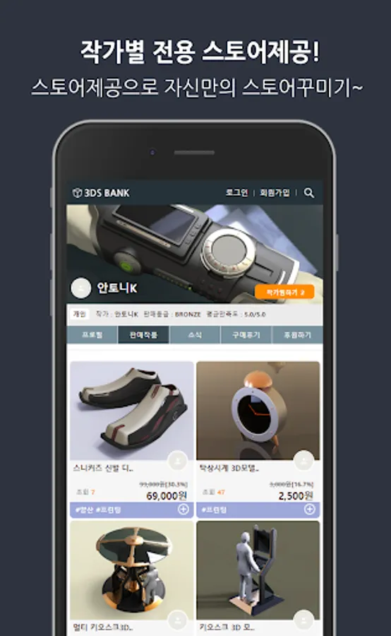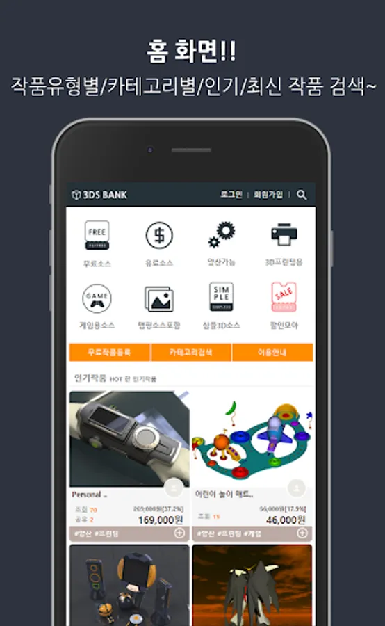 3DS BANK can trade the 3D source and content you want with the lowest cost to the buyer with the maximum profit for the seller. There are various product groups such as design source and character for mass production, automobile, robot, drone, etc., and you can easily register and sell your desired 3D work by registering free work. Also, since various affiliates such as 3D related schools, printing, and design work together, we are actively working to contribute to 3D related infrastructure and development.