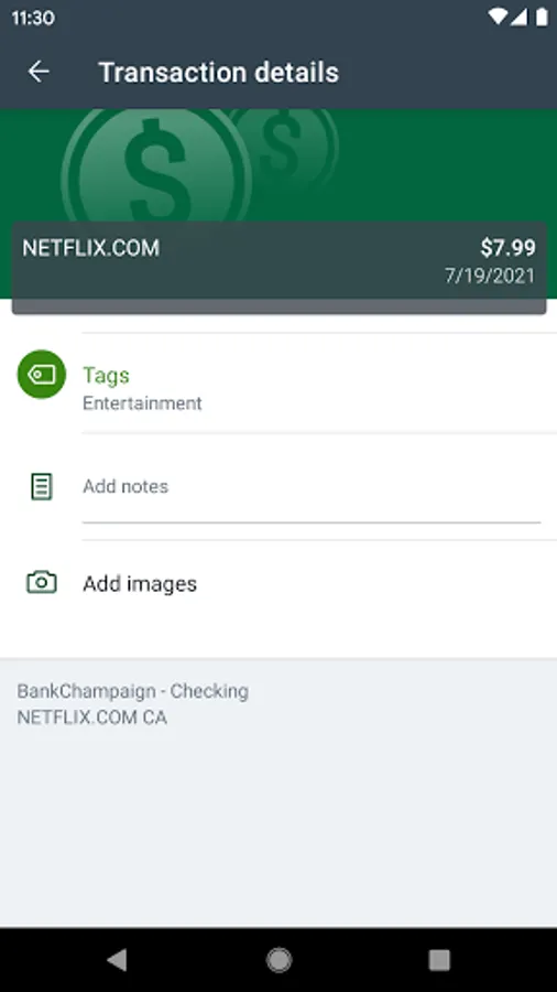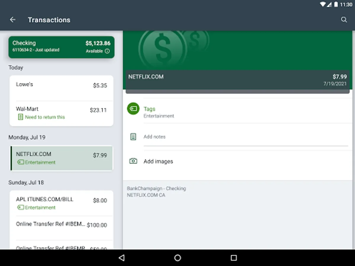 -Keep your transactions organized by allowing you to add tags, notes and photos of receipts and checks.