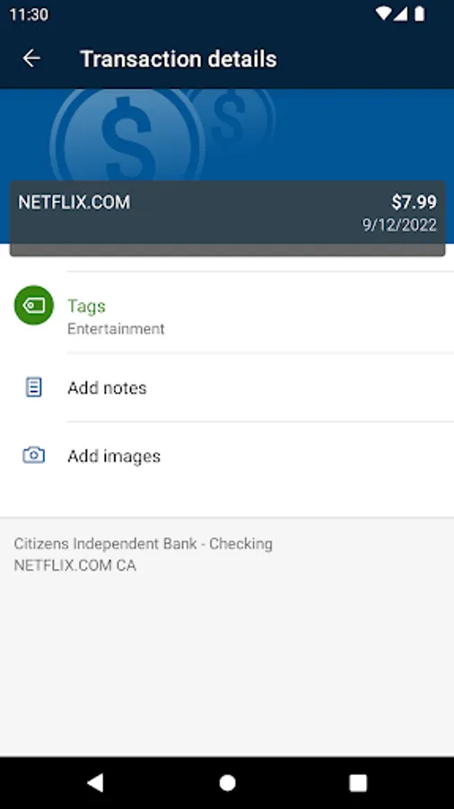 -Keep your transactions organized by allowing you to add tags, notes and photos of receipts and checks.