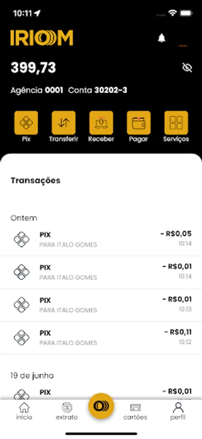 Completely free with complete solutions for your day-to-day life, with Iriom you can send and receive transfers via PIX, track your balance and statement of movements in your account, pay bills, recharge your cell phone, pay online using your virtual card and in stores with your physical card, in addition to withdrawals on the 24-hour network and much more.