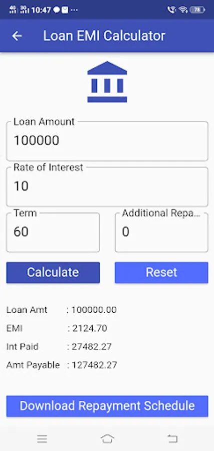 Banker's Calc can be used to calculate EMI and Generate Repayment Schedule.Fixed Deposit & Recurring Deposit interest can also be calculated through this application.