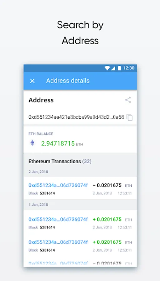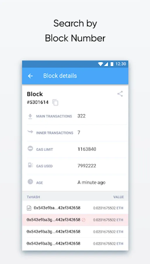 You can also explore blockchain ETH and any ERC-20 token blockchain without downloading the whole blockchain. Like in blockchain applications, you can get the Ethereum project information and read data from the network directly on your device.