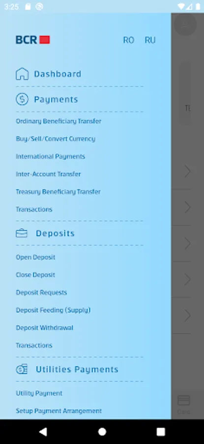 With Personal Mobile 24Banking from BCR Chisinau, you can perform the following types of operations on your device:
