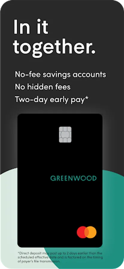 Greenwood is the new financial home for the Black and Latino communities. Become one of the 500,000+ who have joined the movement. When you open an account through Greenwood, you can save money, help the community, and get paid early.Greenwood is a financial technology company, not a bank. Banking services provided by Coastal Community Bank, Member FDIC. The Greenwood Mastercard® Debit Card is issued by Coastal Community pursuant to a license from Mastercard International.