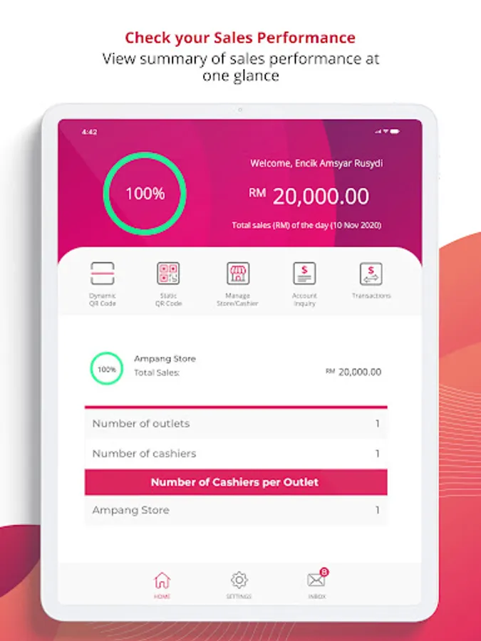 •Outlet / Cashier Management – create and manage different profiles if you have more than one outlet or cashier