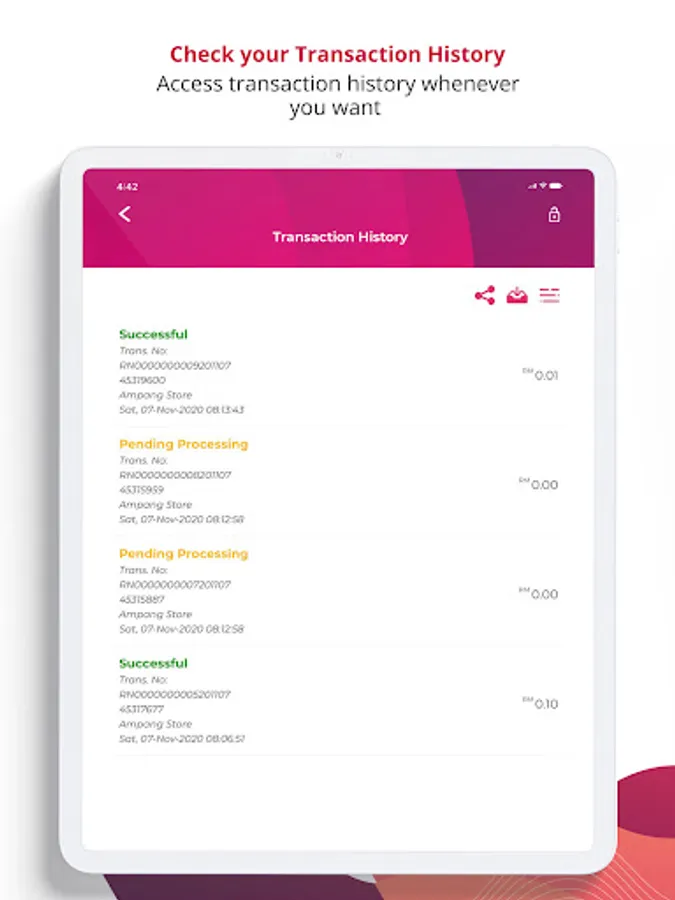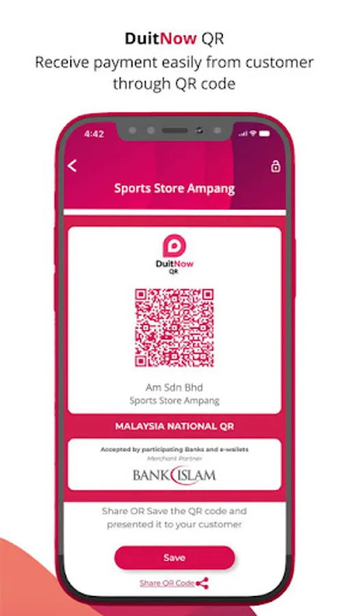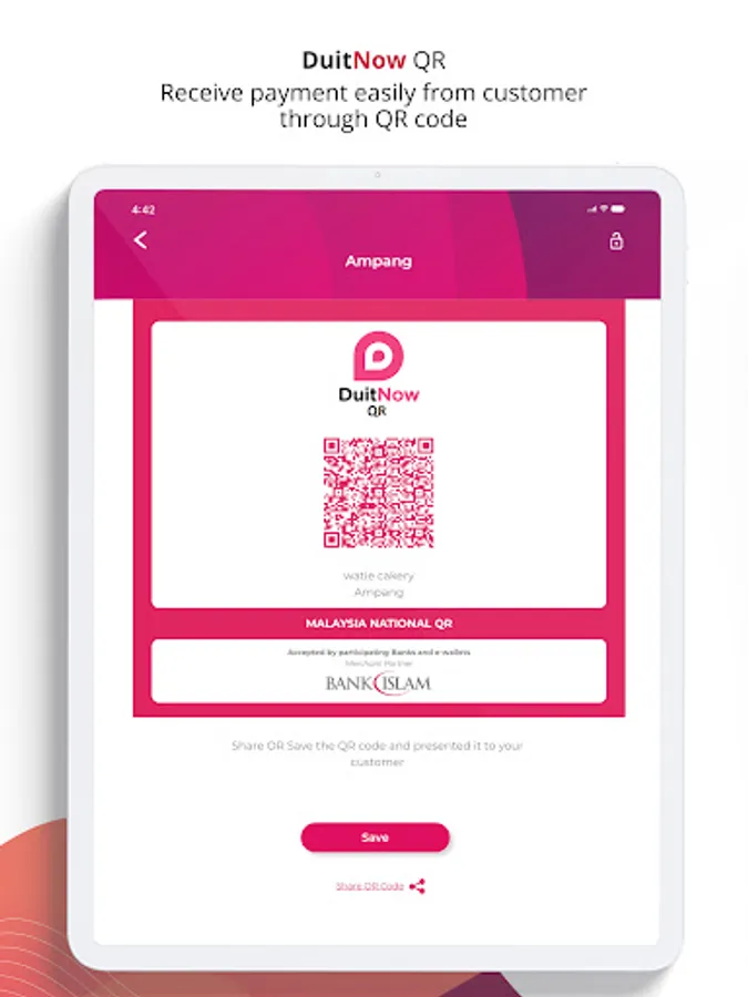 •DuitNow QR – generate a QR code for your customers or other people to pay you
