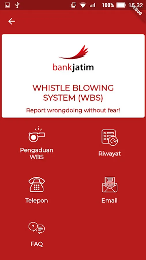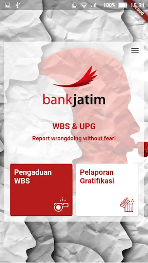 Applications to make WBS complaints and report gratuities to internal parties or the authorities from Bank Jatim