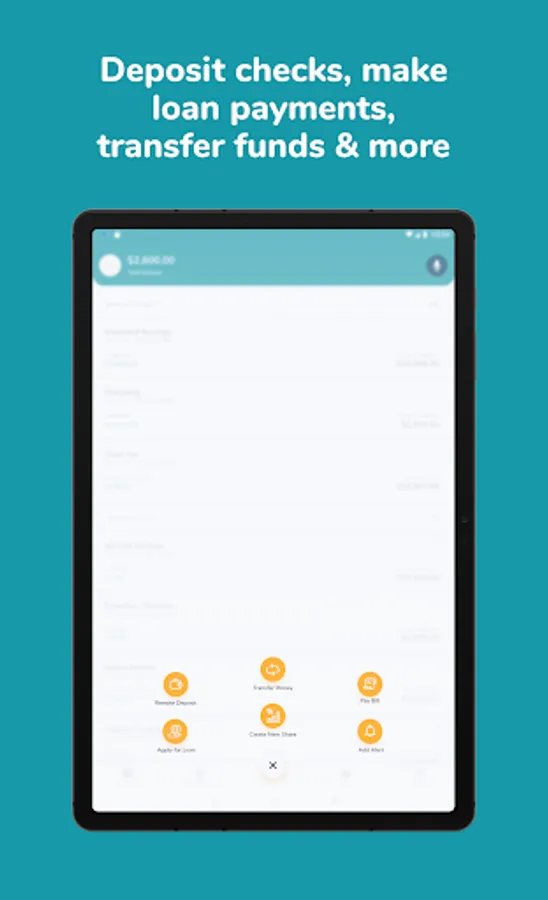 - Deposit Checks using the camera on your smart phone or tablet
