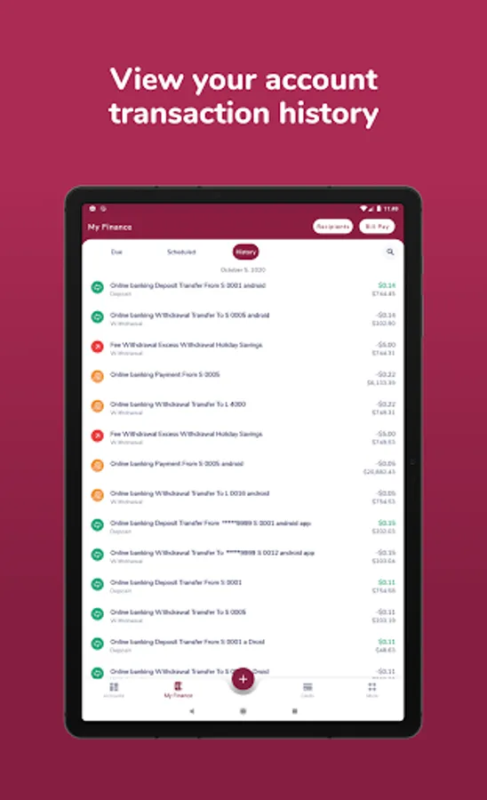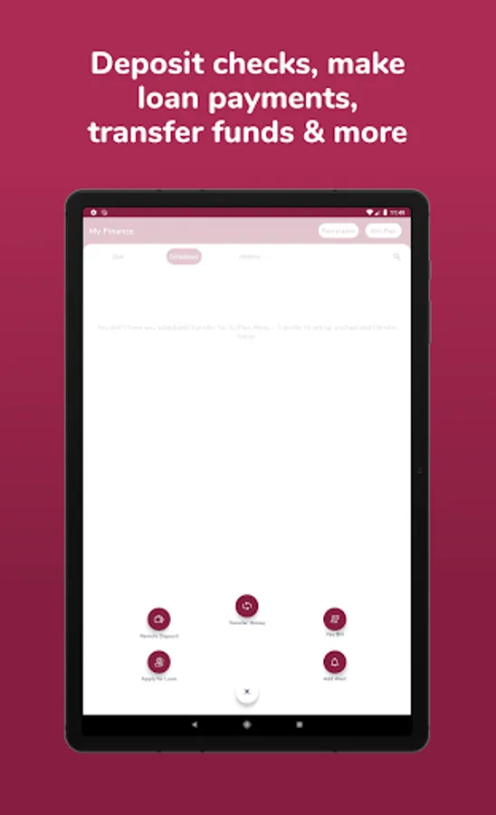 The SIUCU Mobile Banking App enables users to check balances, view transaction history, deposit checks, transfer funds, pay bills and check messages from a smartphone or tablet.