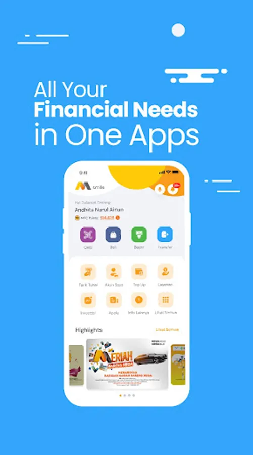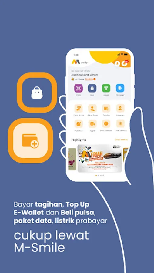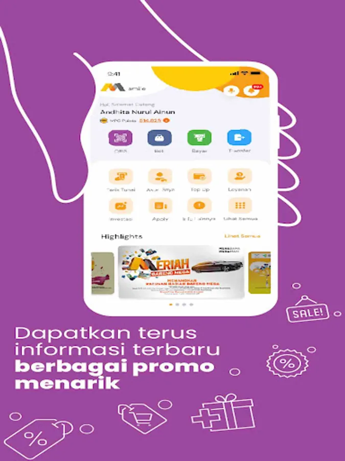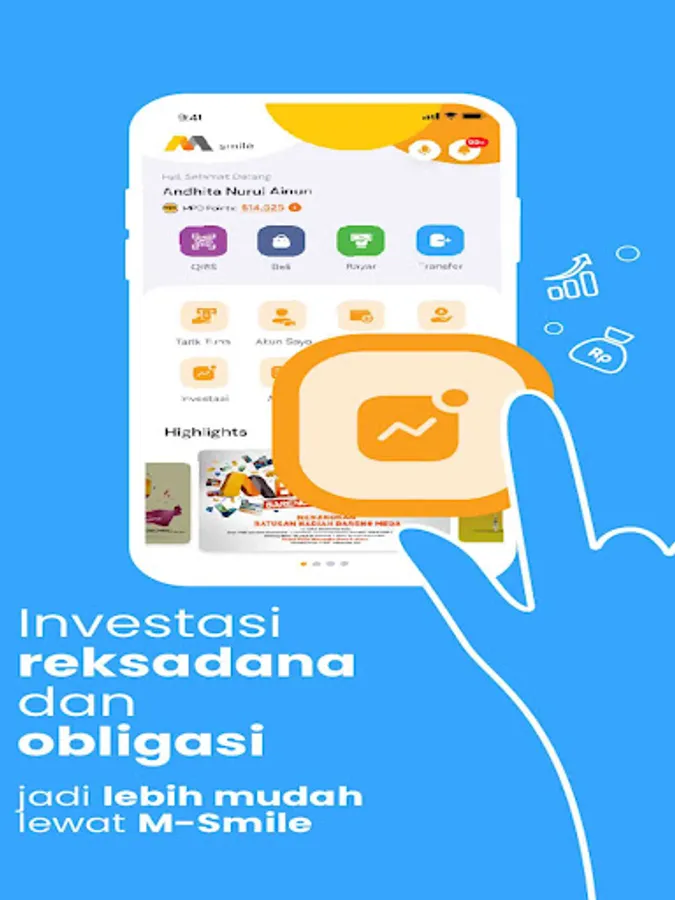 M-Smile (Mega Smart Mobile) is a breakthrough for Bank Mega's mobile banking that is versatile, easy, safe and practical to use. Starting from savings features, credit cards, electronic money, and Bank Mega promo information, all in one hand!