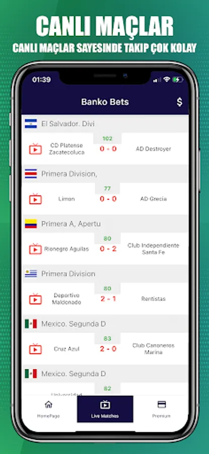 -Canlı sonuçlar bölümünde anlık maç sonuçları takibini yapın.