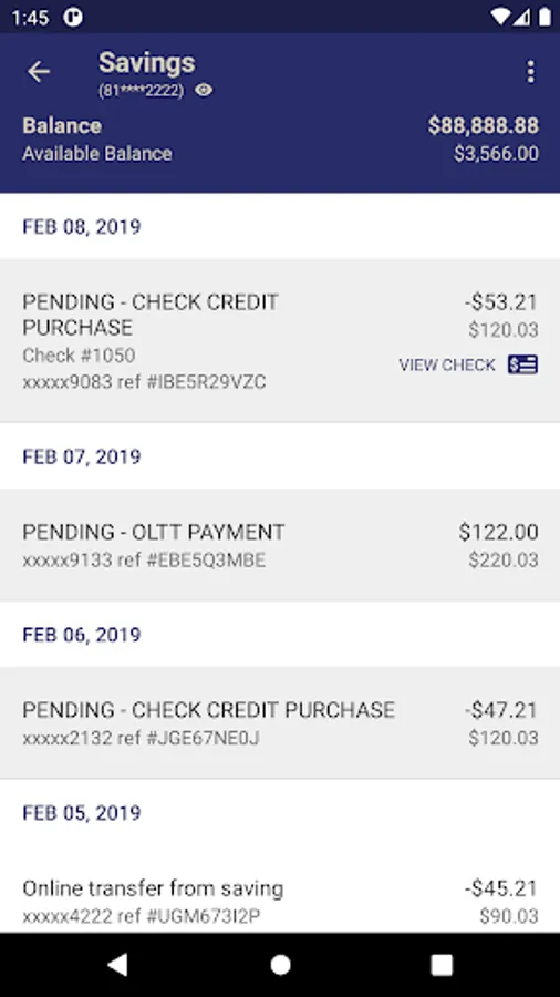 • View recent transactions, including check images