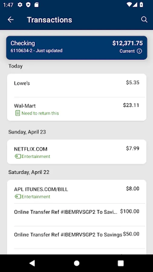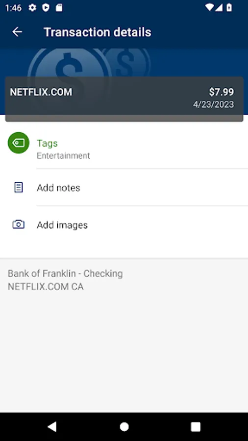 - Keep your transactions organized by allowing you to add tags, notes and photos of receipts and checks.