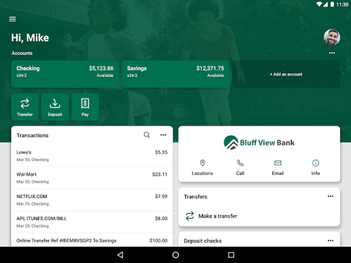 To use the Bluff View Bank app, you must be enrolled as an Bluff View Bank Internet Banking user. If you currently use our Internet Banking, simply download the app, launch it, and login with the same Internet Banking credentials. After you successfully login to the app, your accounts and transactions will begin updating.