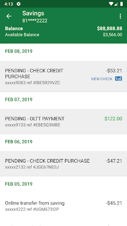 • View recent transactions, including check images