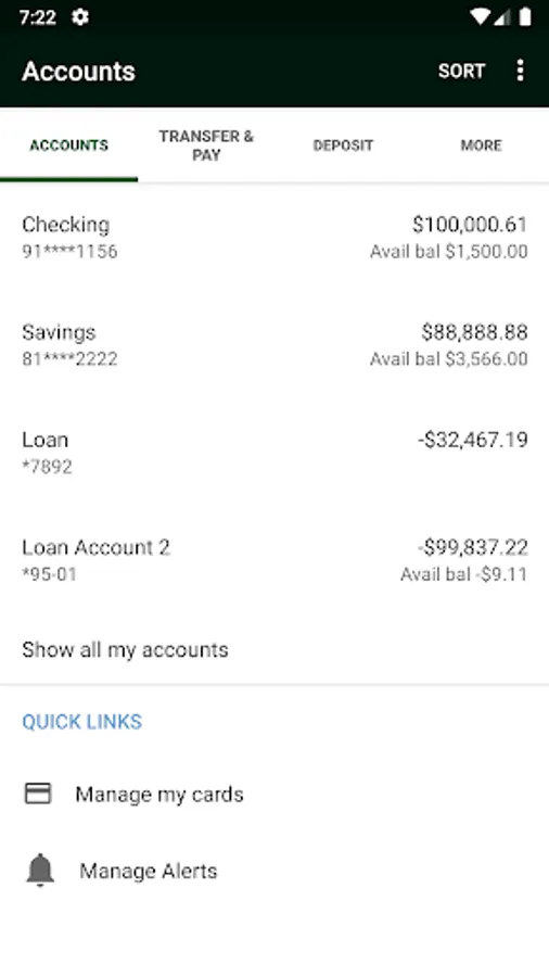 The App allows you to view balances, view transactions, deposit checks by taking a picture, pay bills in seconds, monitor account activity, transfer funds between your accounts, and find the nearest ATM or branch.