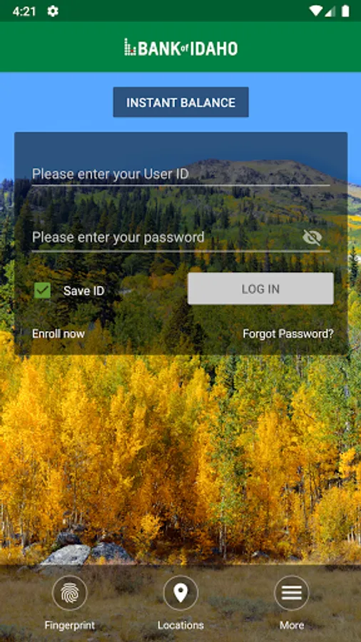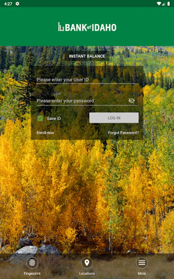 This is Bank of Idaho’s Mobile Banking App. If you are enrolled in Bank of Idaho’s Internet Banking just install the App and log in with your already established Internet Banking credentials. If you are not yet enrolled in Internet Banking, you may enroll and access your account at www.bankofidaho.com or simply download and enroll from the app.