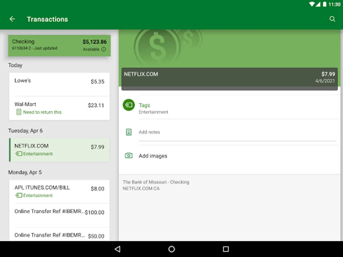 · Organize transactions by adding tags, notes and photos of receipts and checks
