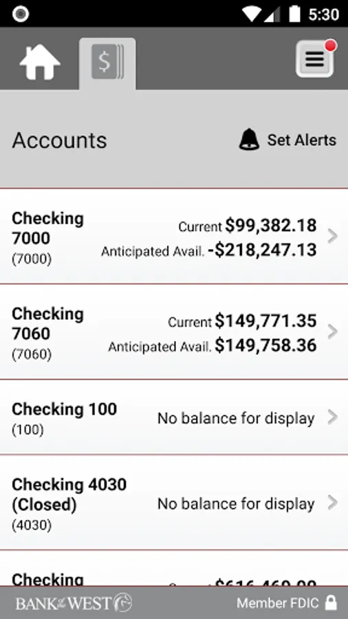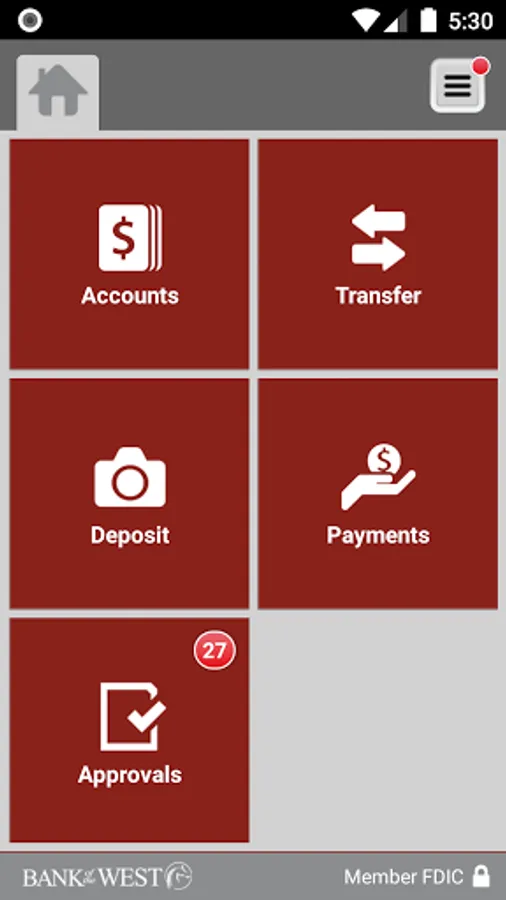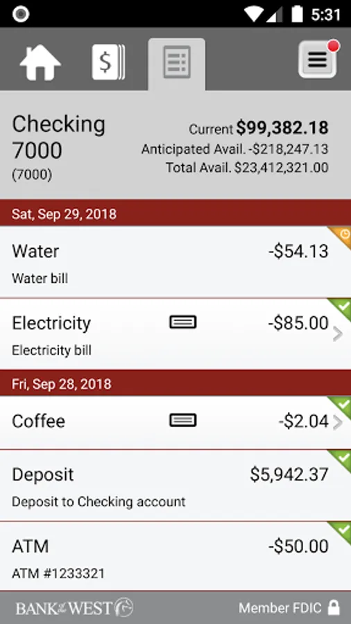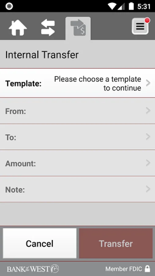 • Transfer money between your Bank of the West accounts or manage a Bill pay item
