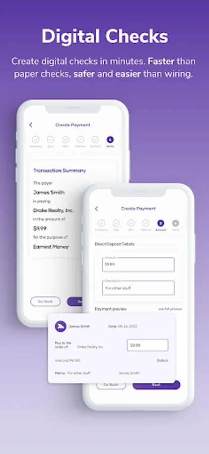 We believe that technology should be built to help people do what they do best—not add new layers of frustration. That's why we've designed our platform with the goal of making real estate payments as simple, straightforward, and secure as possible. We'll help you send your client's check by scanning it or entering information manually and have it deposited directly into your account within one day—so when it comes time for that client to close on their house, you'll have access to those funds right away!