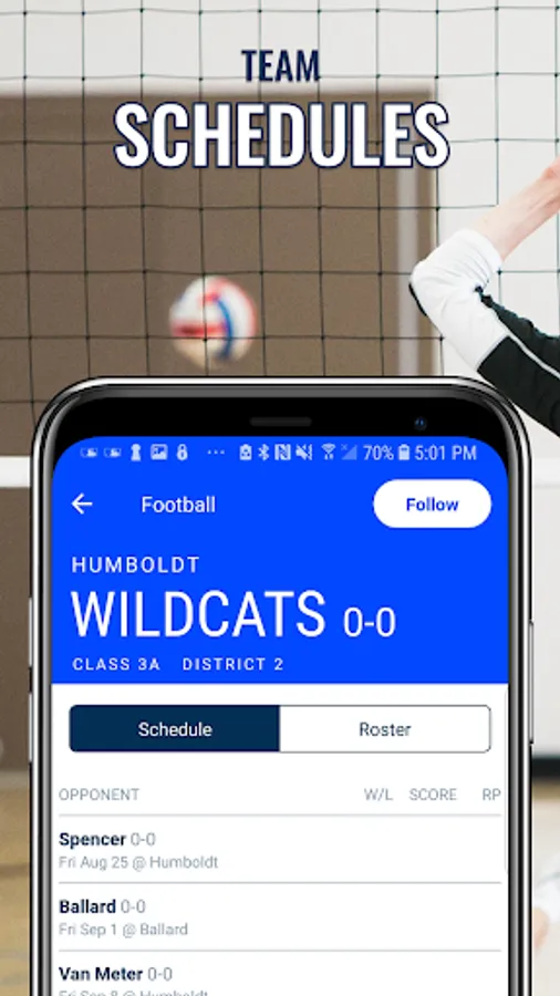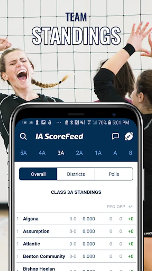 Covers all varsity teams for Iowa high school football, boys basketball, and girls basketball.