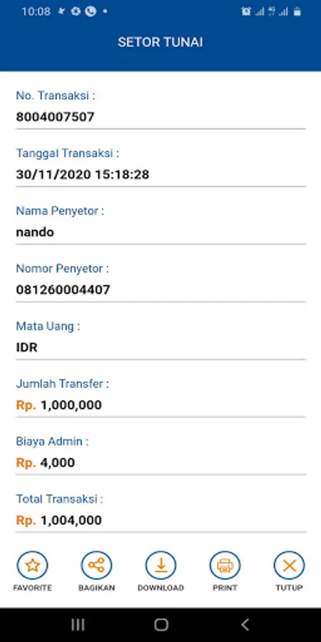2. Setoran Tunai Martabe SiPandai