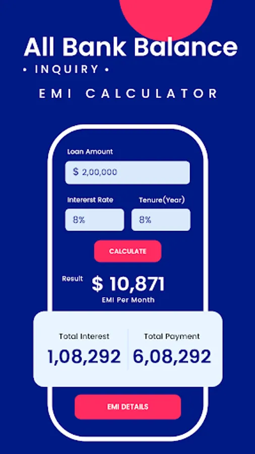 Check your loan EMI(Every Month Installment) very easily for your existing loans or for new loans within this app.