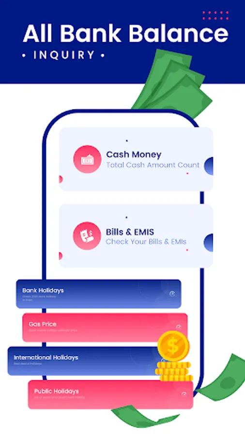 This all All Bank Balance Inquiry app lets you check account balance without even login to your bank account or internet banking or any mobile banking. A bank balance check & all bank app helps you check bank account balance anytime.