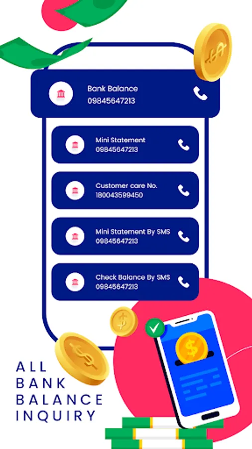 Bank balance check app is completely free bank balance checking an app for users who want check bank balance or get their bank balance enquiry. This App provides the official bank' balance checking number.