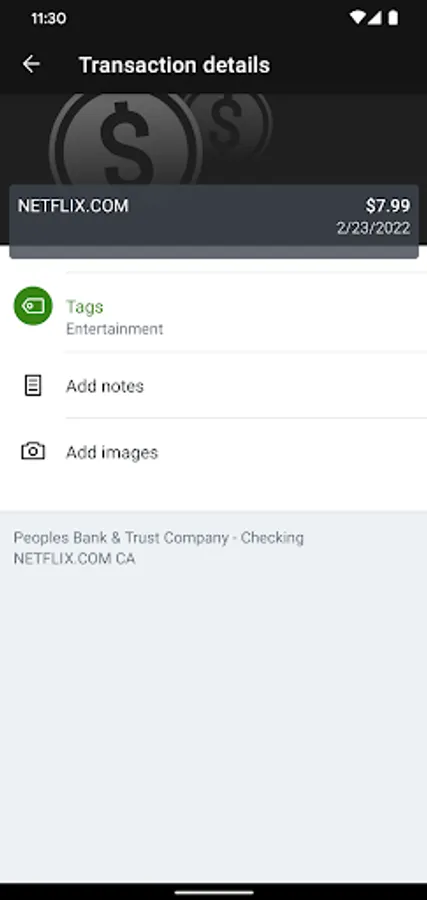 Keep your transactions organized by allowing you to add tags, notes and photos of receipts and checks.