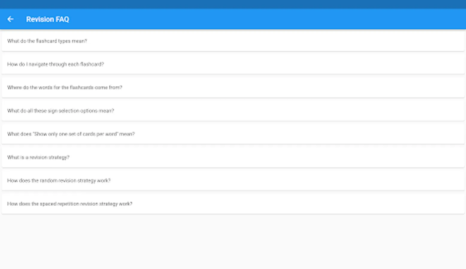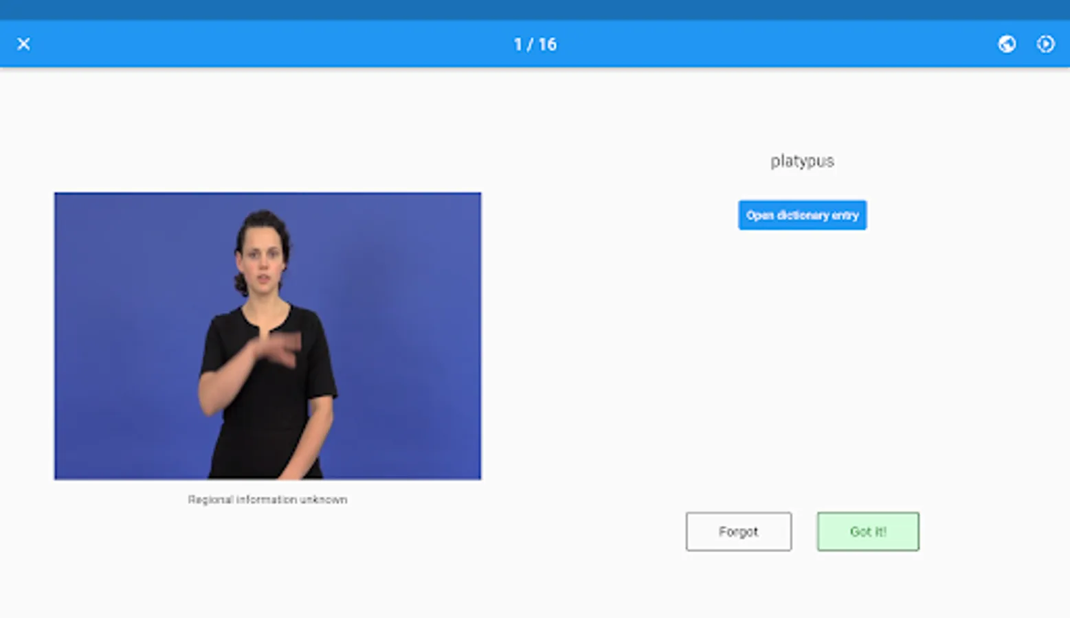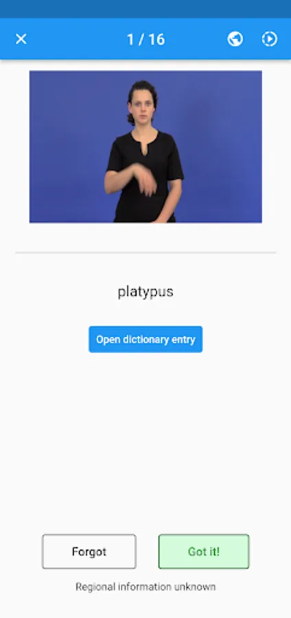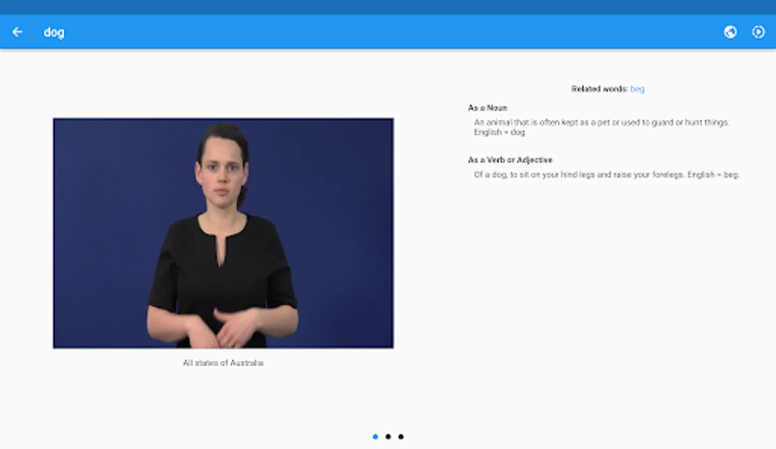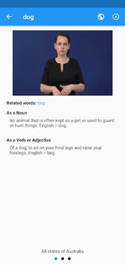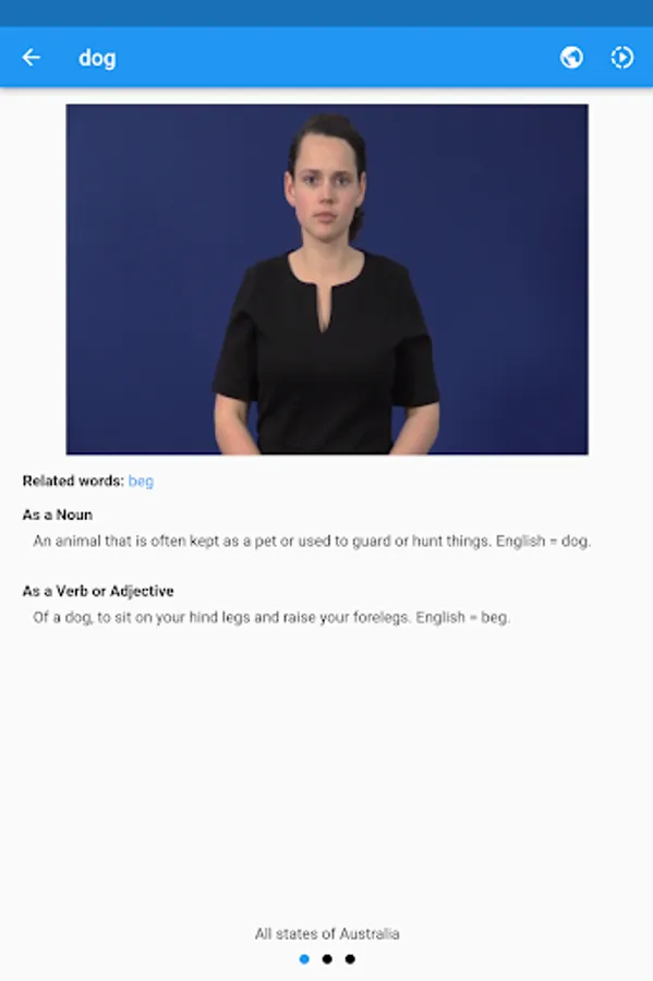 Auslan Dictionary is a video dictionary for Australian Sign Language. The app offers simple search functionality where every sign has an accompanying video showing you how to do it. You may save favourites, create custom lists, and practice them with a flashcard based revision tool, complete with optional spaced repetition based learning.