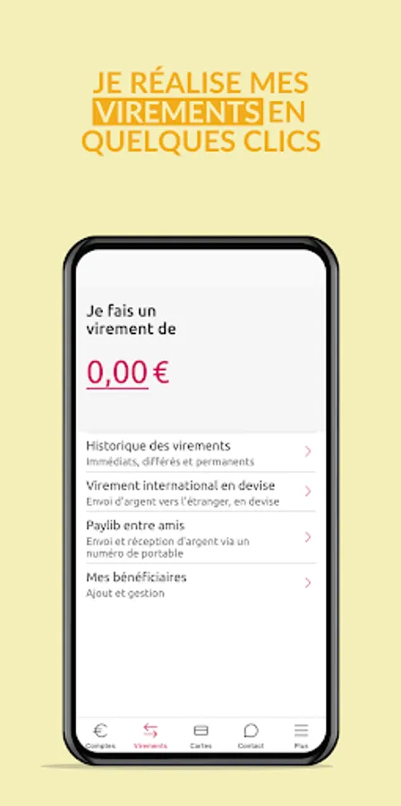 - A few clicks are enough to carry out all your operations instantly ** (transfers, addition of transfer beneficiaries), modify your credit card limits, activate/deactivate your card payments abroad, remotely, etc.