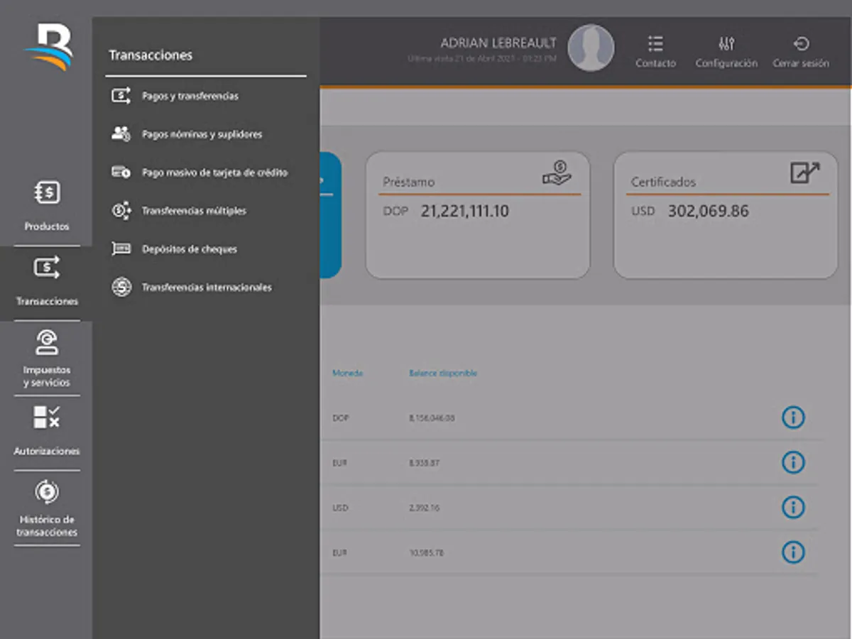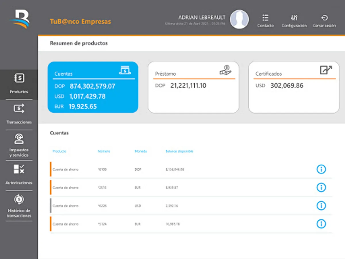 TuB @ nco Empresas is closer with the Empresas Banreservas App, with which you can view your company's products and services, make inquiries, payments and transfers as well as approve or reject transactions from wherever you are.