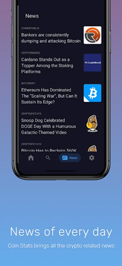 Coin Stats brings all the crypto related news from over 40 sources to a single screen so you can easily stay on top of the market.