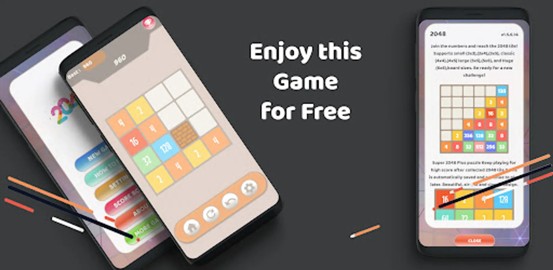 If you like number games and number puzzle games than play free 2048 number puzzle game! It is one of the best brain teasers and brain games for adults. Enjoy different games, difficult games and fun games in one brain game! 2048 puzzle game is a fun free game and you can play without internet and offline!