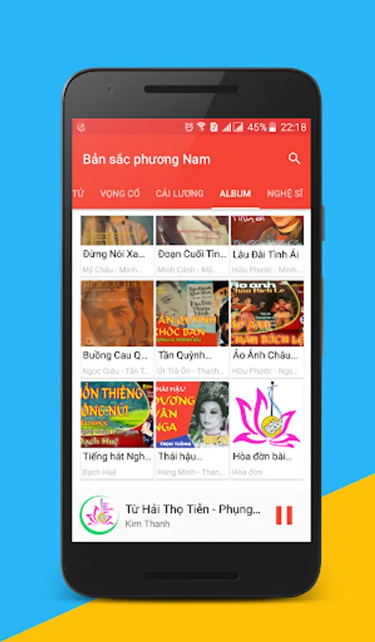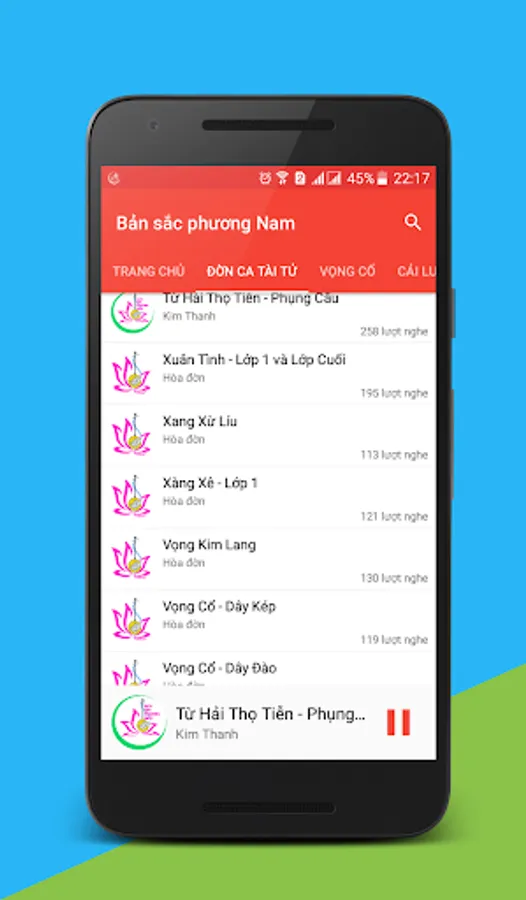 Vong Co - Cai Luong Number - Phuong Nam Identity allows music fans to listen to Don Ca Tai Tu, Vong Co and Cai Luong online right on their phones.
