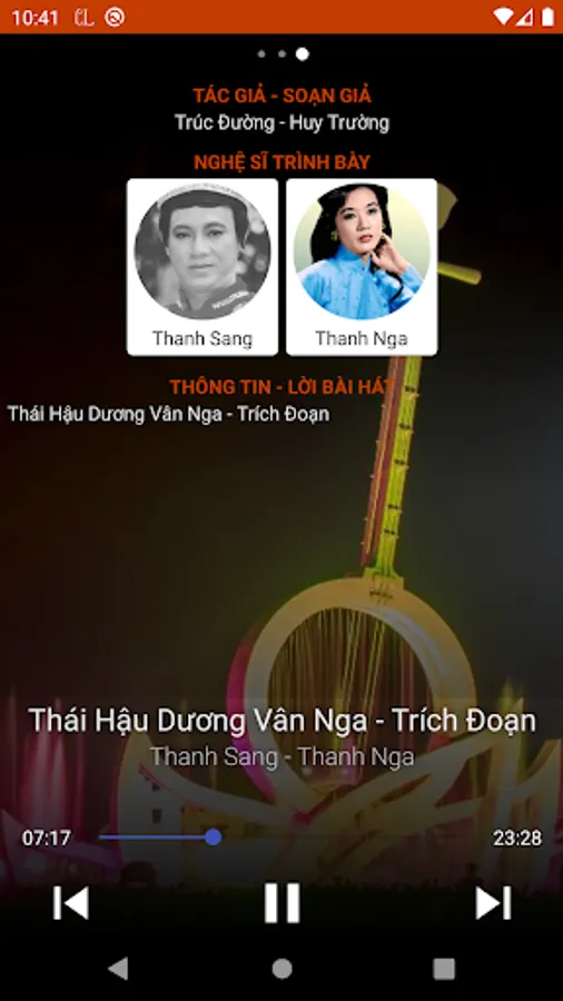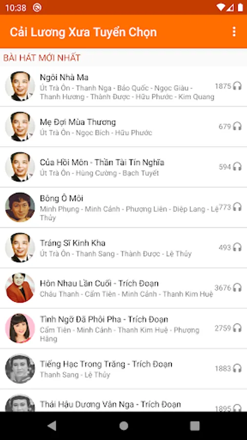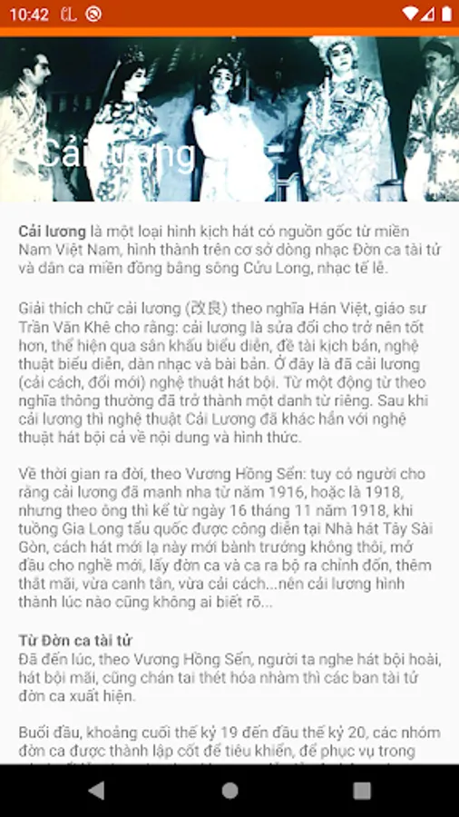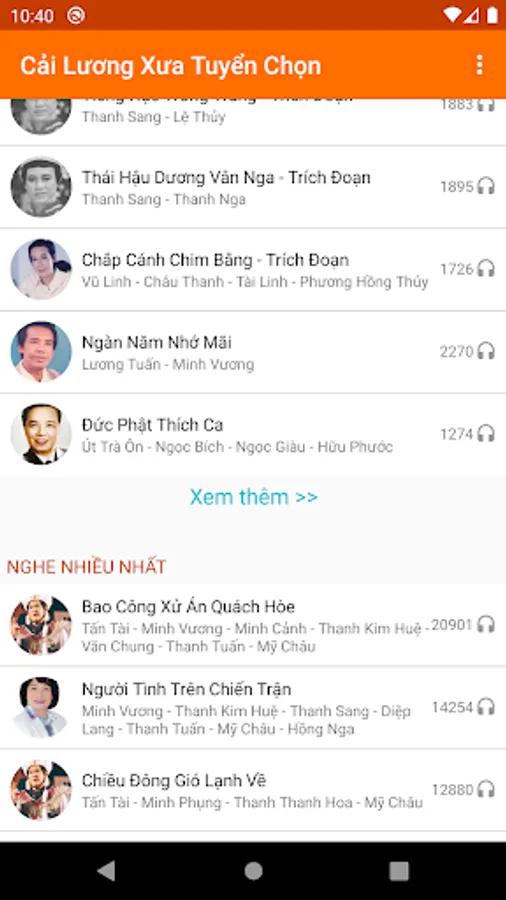The app provides a store of famous old-fashioned classical songs and plays, performed by famous vocalists such as Út Trà On, Thanh Nga, Út Bạch Lan, Minh Vương, Lệ Thủy, Tấn Tài , Ngoc Giau, Phuong Lien, Thanh Kim Hue, Thanh Tuan, ..