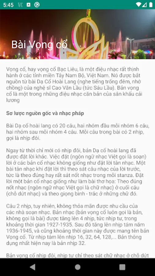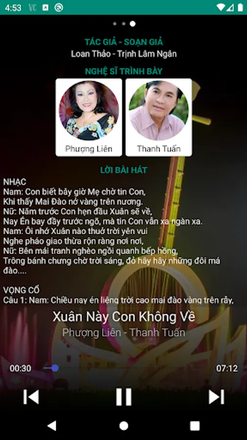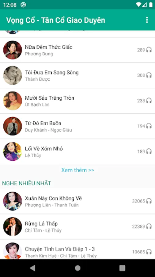 The application offers thousands of famous Vong Ancient - New Ancient Love charm songs presented by the resounding voices such as Ut Tra On, Thanh Nga, Ut Bach Lan, Minh Vuong, Le Thuy, Tan Tai, Ngoc Gia, Phuong Lien, Thanh Kim Hue, Thanh Tuan, ..