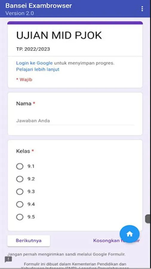 This application is temporarily available for the implementation of online exams at SMPN 1 Bandar Seikijang.